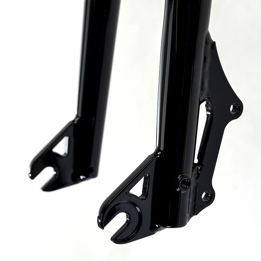 Identiti propose désormais une version à frein à disque de la fourche FFX-45 fabriquée en acier CrMo thermotraité robuste et léger. Peut être utilisé avec un frein sur jante ou un frein à disque. Pour une utilisation avec un frein sur jante avec un frein avec des jambes de 43 – 57 mm est nécessaire.